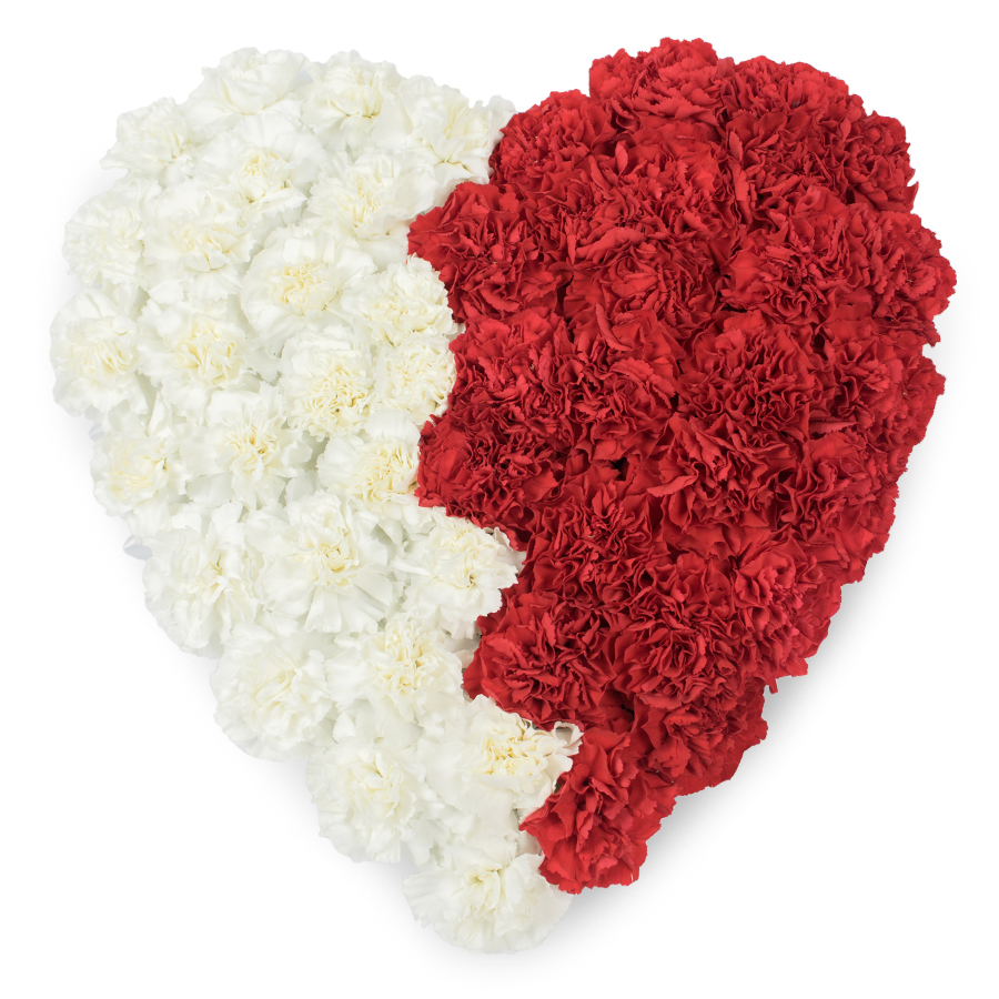 Experience the timeless beauty of our mixed carnations arrangement, thoughtfully crafted to convey deep sympathy and heartfelt emotions. This bouquet features a stunning combination of white and red carnations, symbolizing purity and love.